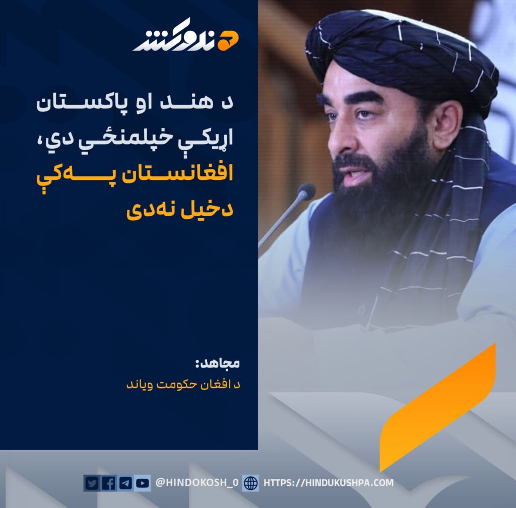 د افغان حکومت ویاند مولوي ذبیحالله مجاهد ویلي، چې د هند او پاکستان اړیکې د هغوی خپلمنځي مسئله ده، او افغانستان پکې دخیل نهدی.