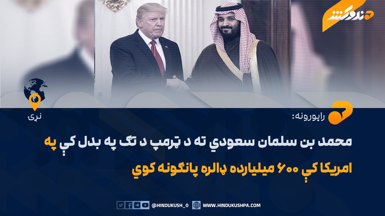 د راپورونو له مخې د سعودي د بهرنيو چارو وزارت دا خبر تاييد کړی چې د سعودي وليعهد محمد بن سلمان ټرمپ ته په يوه ټيليفوني اړيکه کې ډاډ ورکړی چې سعودي به امريکا کې ۶۰۰ مليارده ډالره پانګونه کوي.