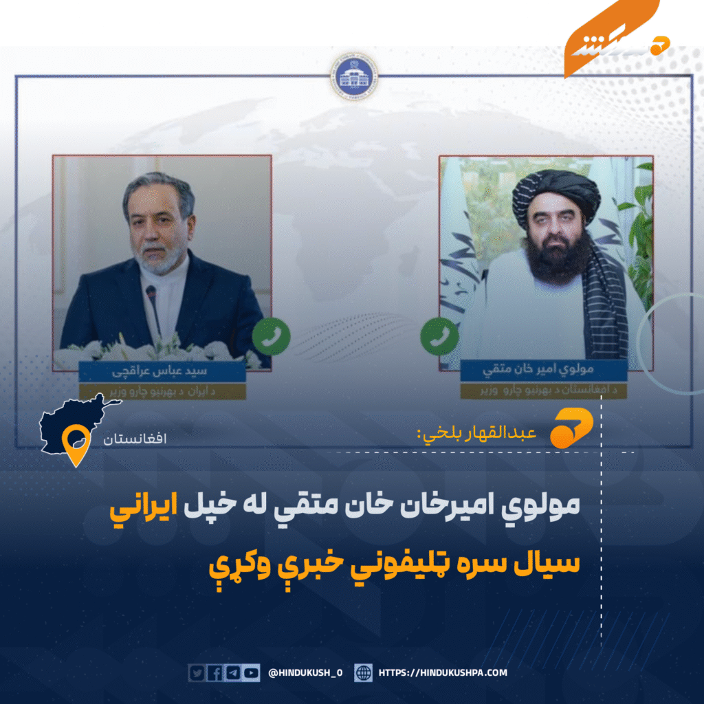 د هېواد بهرنیو چارو وزیر مولوي امیرخان متقي له خپل ایراني سیال عباس عراقچي سره د ټلیفوني اړیکې له لارې پر روانو حالاتو او دوه اړخیزو اړیکو خبرې کړې دي.