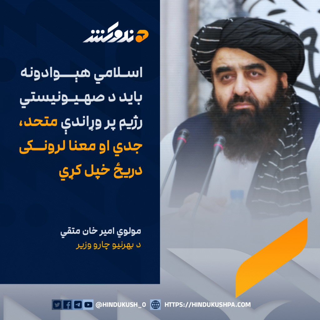 د بهرنیو چارو وزیر مولوي امیر خان متقي د قطر بهرنیو چارو وزارت د دولت له وزیر دکتور محمد بن عبدالعزیز الخلیفي سره ټیلیفوني خبرو کې ویلي، اسلامي هېوادونه باید د صهیونیستي رژيم پر وړاندې متحد، جدي او معنا لرونکی دریځ خپل کړي.