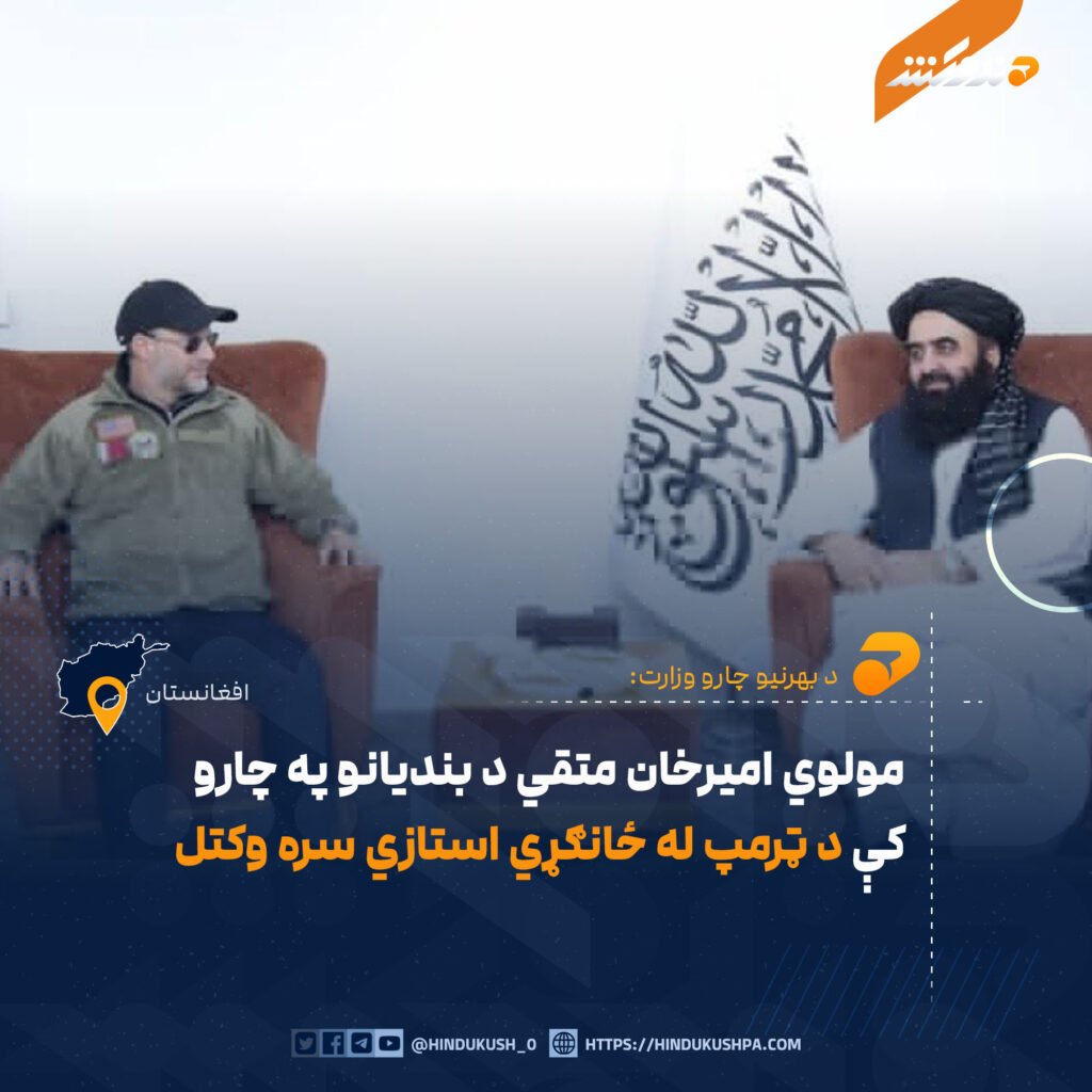 د هېواد د بهرنیو چارو وزیر مولوي امیر خان متقي نن د بندیانو په چارو کې د امریکا د ولسمشر ډونالډ ټرمپ له ځانګړي استازي اډم بولر په مشرۍ امریکایي پلاوي سره وکتل.