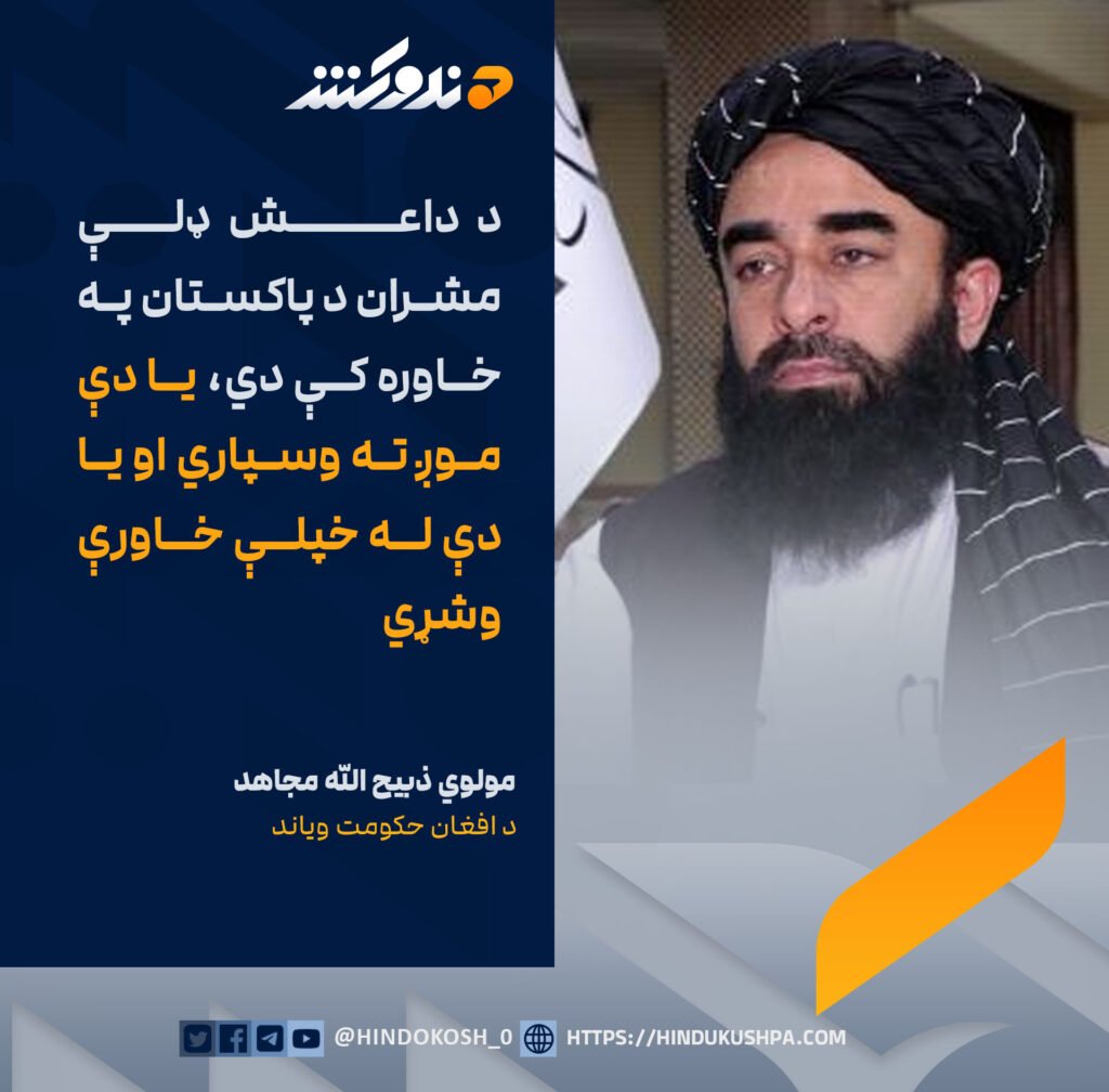 د افغان حکومت وياند مولوي ذبيح الله مجاهد په خبري کنفرانس کې ويلي، چې د داعش ډلې مشران د پاکستان په خاوره کې دي او په خبره یې پاکستان دې یا افغان حکومت ته دا کسان وسپاري او يا دې له خپلې خاورې وشړي.