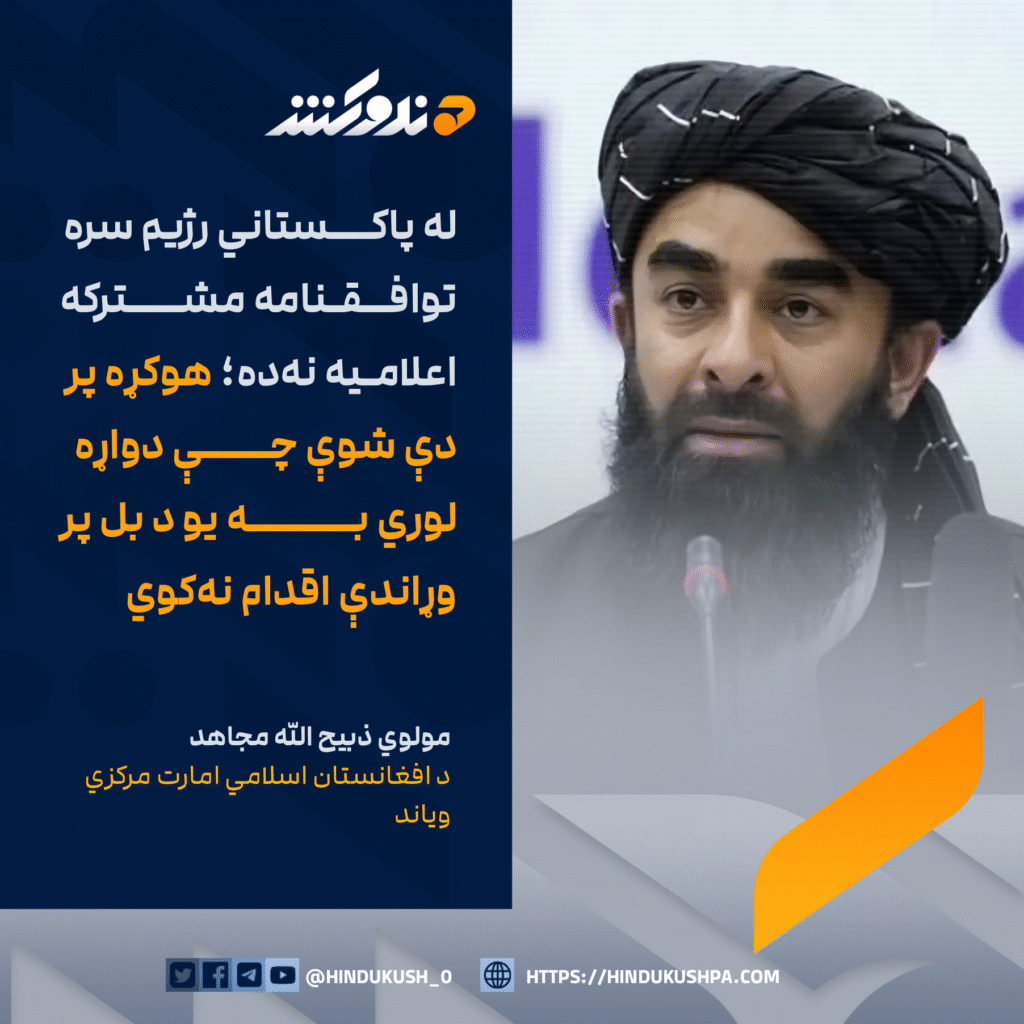 د افغانستان اسلامي امارت مرکزي ویاند، مولوي ذبیح الله مجاهد پر خپل ایکس د یوه وضاحت په خپرولو سره ویلي، چې له پاکستاني رژیم شوې هوکړه ګډه اعلامیه نه ده.
