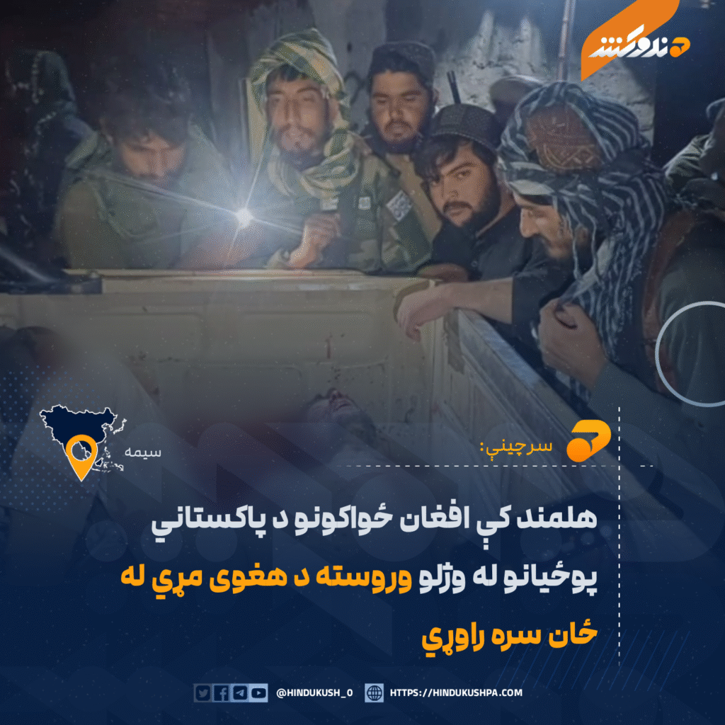 هندوکش غږ ته په دې رسېدلي انځور کې ښکاري، چې افغان ځواکونو د پاکستاني پوځيانو له وژلو وروسته د هغوی مړي له ځان سره راوړي دي.
