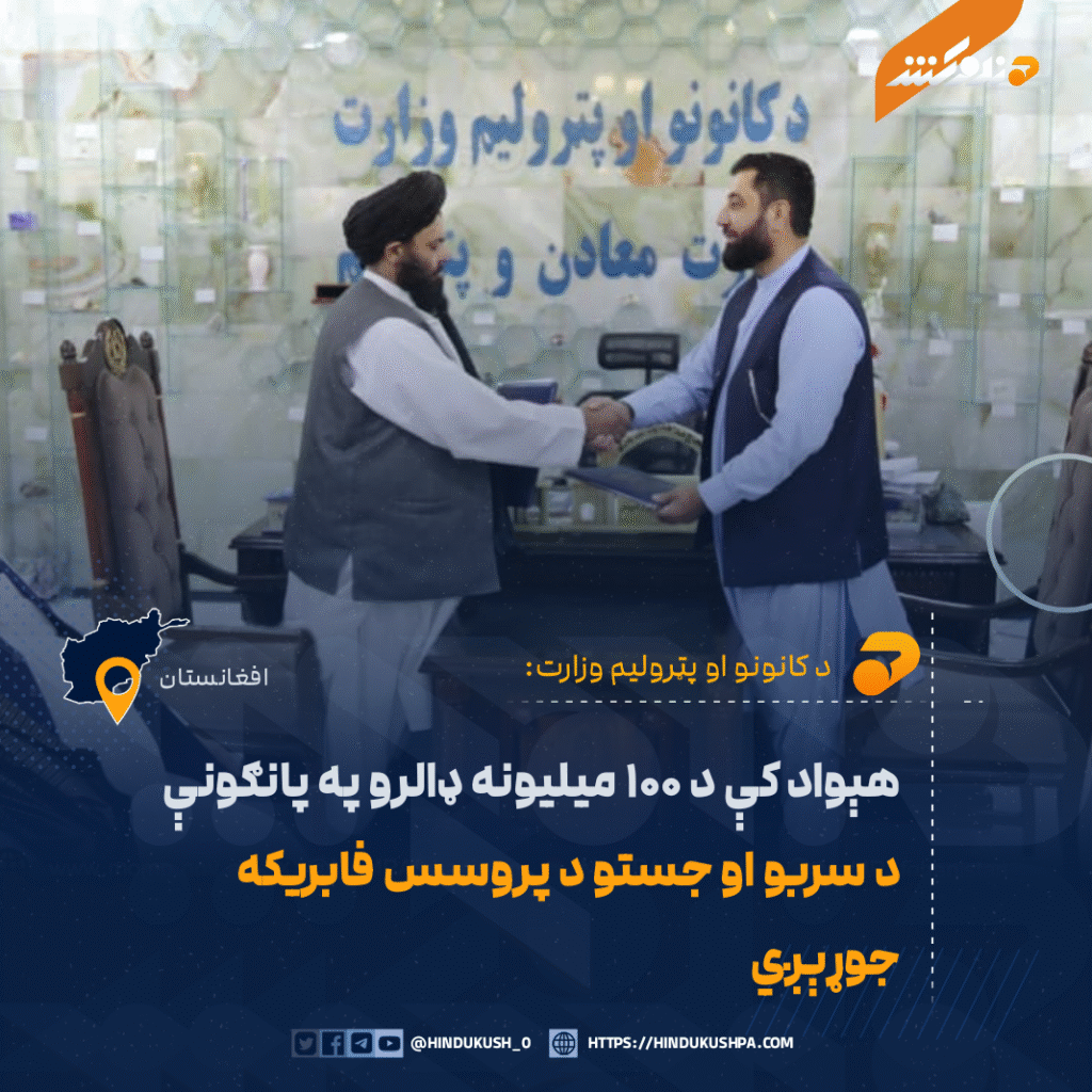 شېر کړئ Facebook Twitter بریښنالیک Telegram WhatsApp د کانونو او پټرولیم وزارت د کابل لمر شرکت سره د سربو او جستو د پروسس فابریکې جوړولو هوکړهلیک لاسلیک کړ. د کانونو او پټرولیم وزارت په یوه خبرپاڼه کې ویلي، چې یاده فابریکه په درېیو پړاوونو کې د ۱۰۰ میلیونه ډالرو په پانګونه جوړېږي، چې د ورځې تر ۵۰۰۰ ټنو تولیدي ظرفیت به ولري.وزارت زیاته کړې، چې یاد شرکت به د انرژۍ د تامین لپاره حرارتي برښنا جوړوي او د خامو توکو لپاره به د ډبرو سکرو پر کان هم پانګونه کوي.