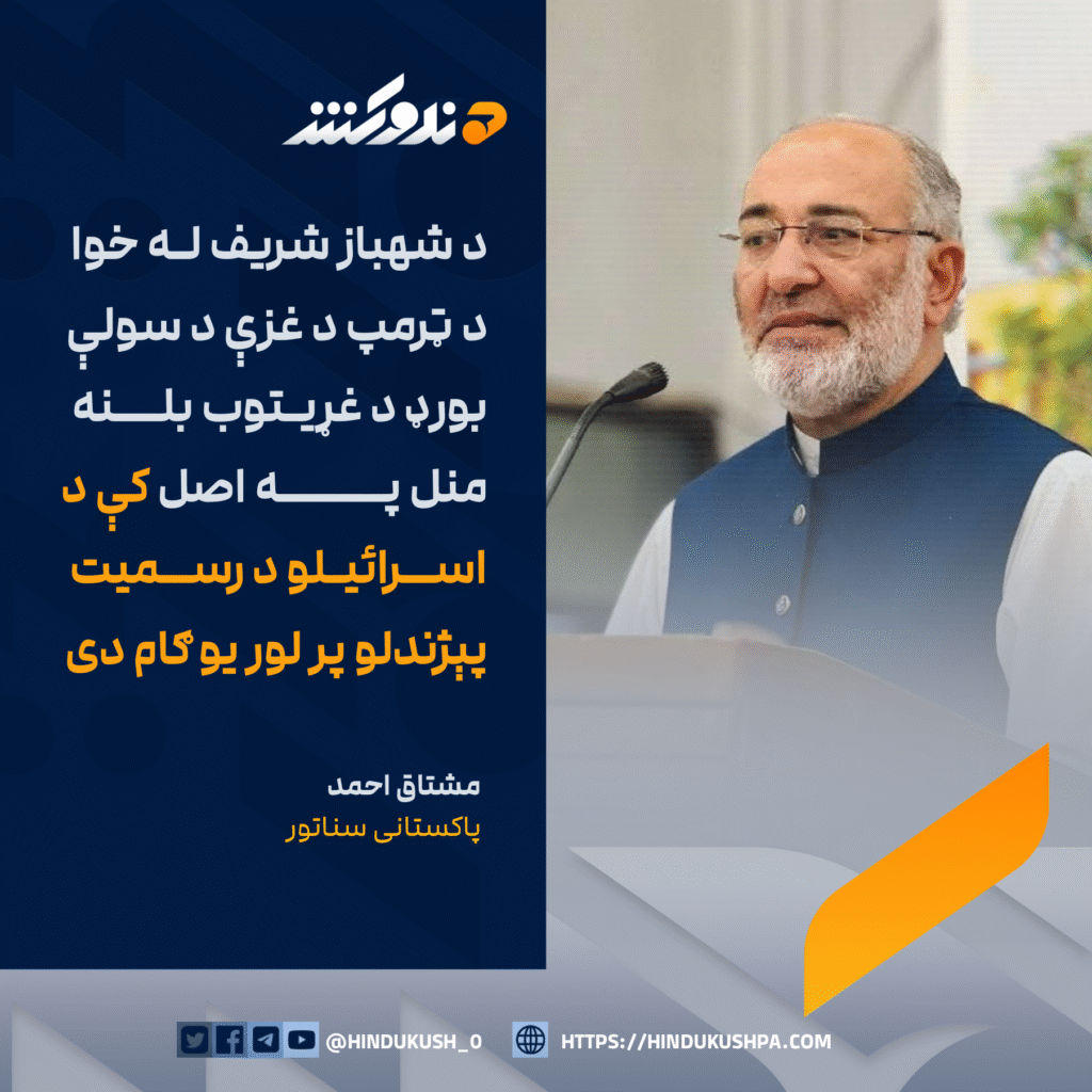 پاکستانی سناتور مشتاق احمد: د شهباز شریف له خوا د ټرمپ د «غزې د سولې بورډ» د غړیتوب بلنه منل په اصل کې د اسرائیلو د رسمیت پېژندلو پر لور یو ګام دی