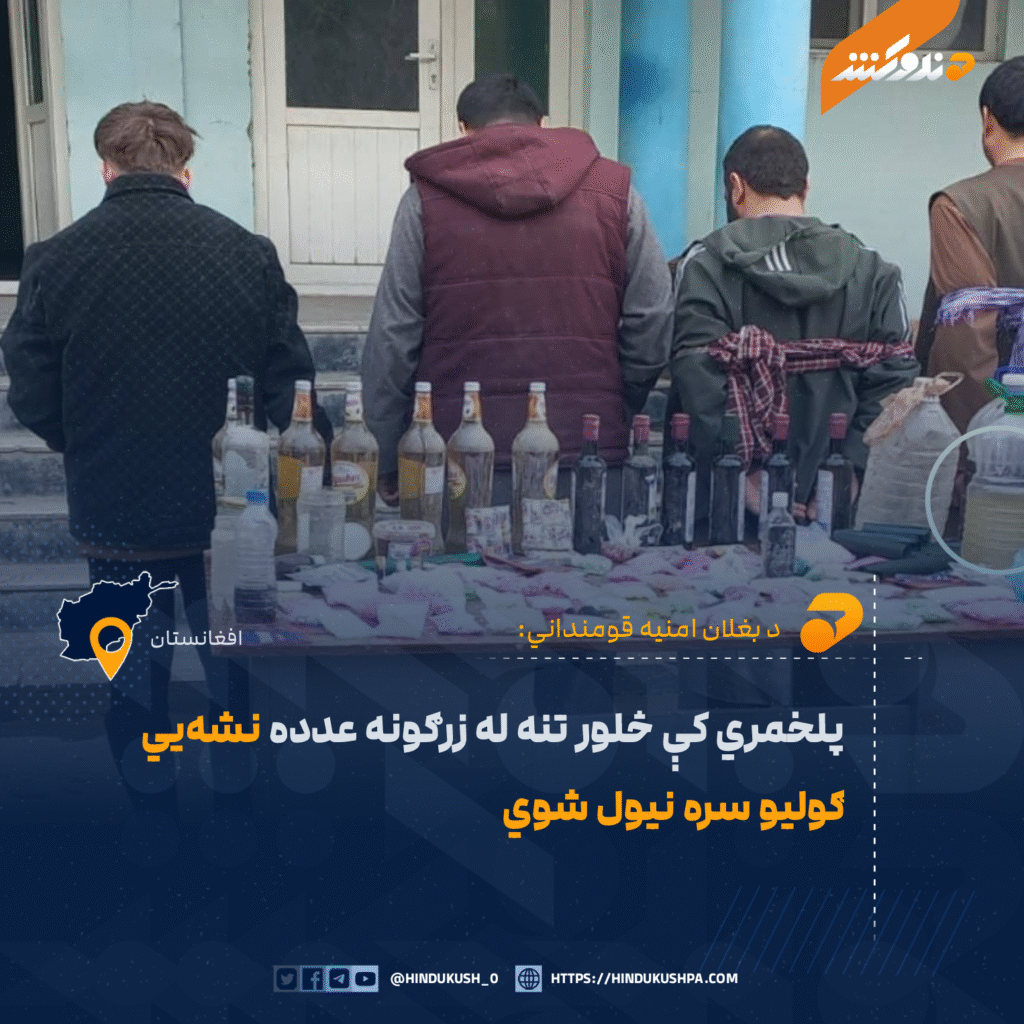 د بغلان امنیه قوماندانۍ د نشه‌يي توکو پر وړاندې د مبارزې مدیریت پولیسو د دغه ولایت په مرکز پلخمري ښار کې څلور تنه د نشه‌يي توکو د خرڅلاو په تور نیولي.