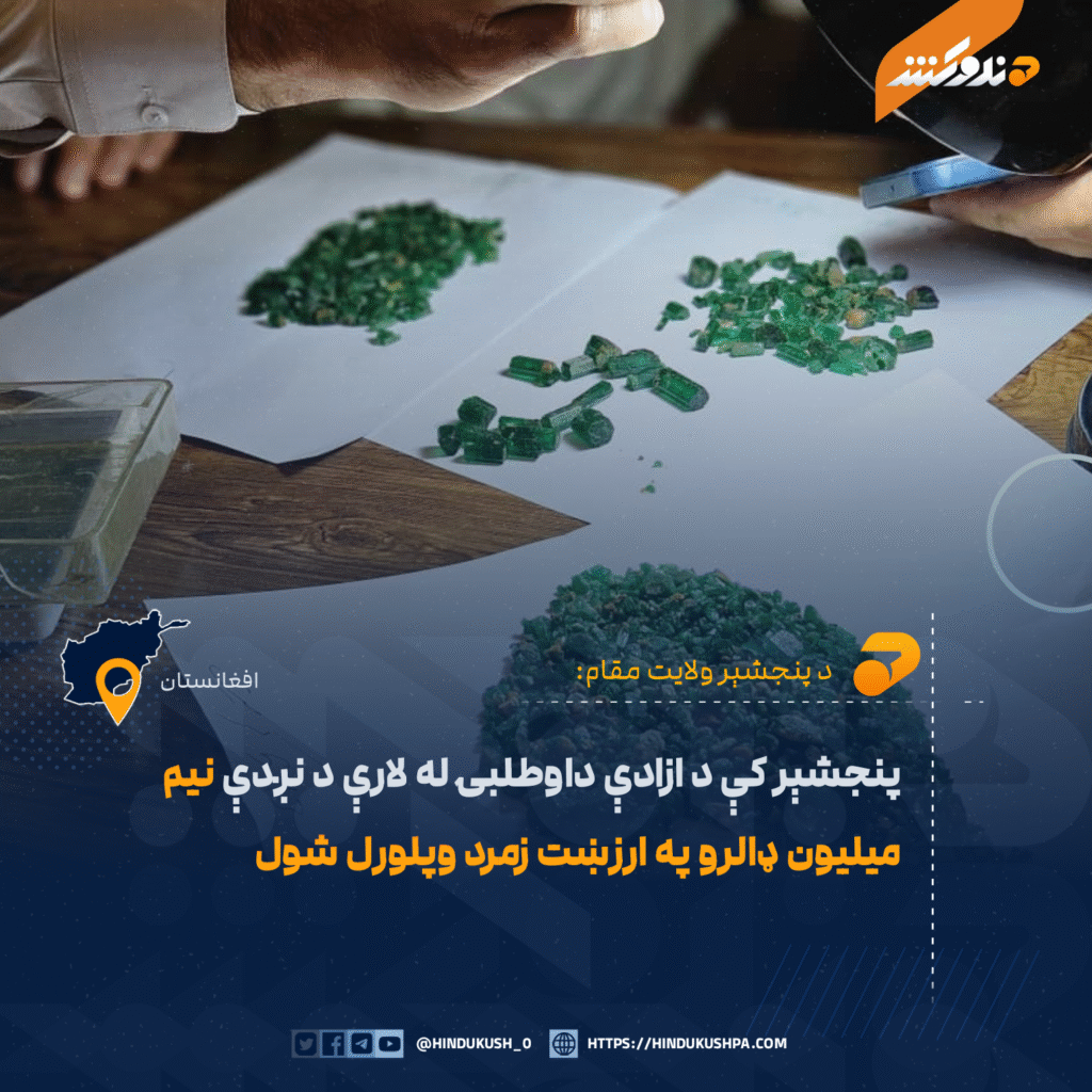 د پنجشېر ولایت مقام رسنیو مرکز په یوه خبرپاڼه کې وایي، چې د دغه ولایت له کانونو استخراج شوي اته زره او ۶۲۸ قیراطه زمرد د ازادې داوطلبۍ له لارې په نږدې نیم میلیون امریکايي ډالرو پلورل شوي.