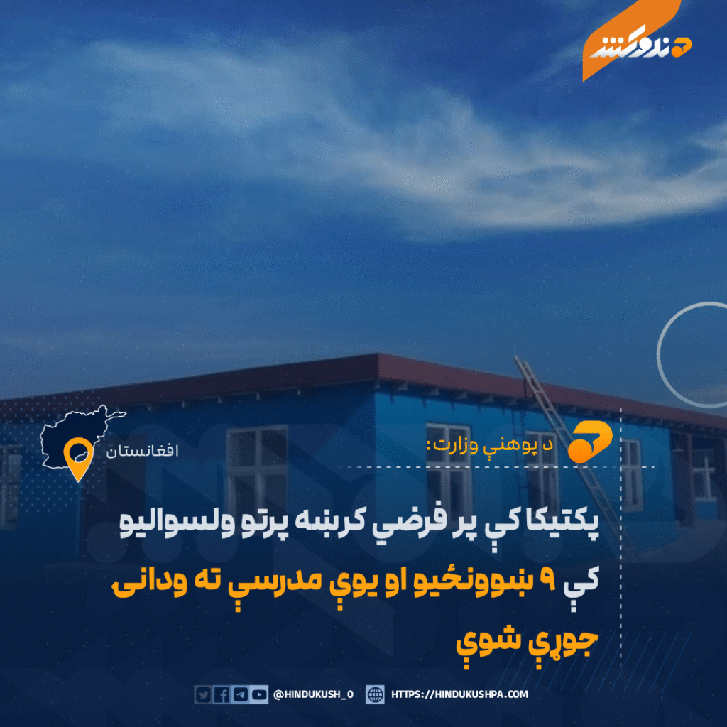 د پوهنې وزارت ویاند قاري منصور احمد حمزه وایي، چې پکتیکا ولایت کې پر فرضي کرښه پرتو ولسوالیو کې د ۶۰ میلیونه افغانیو په لګښت د ۹ ښوونځیو او یوې مدرسې د نویو ودانیو د جوړولو چارې بشپړې او ګټې اخیستنې ته وسپارل شوې.