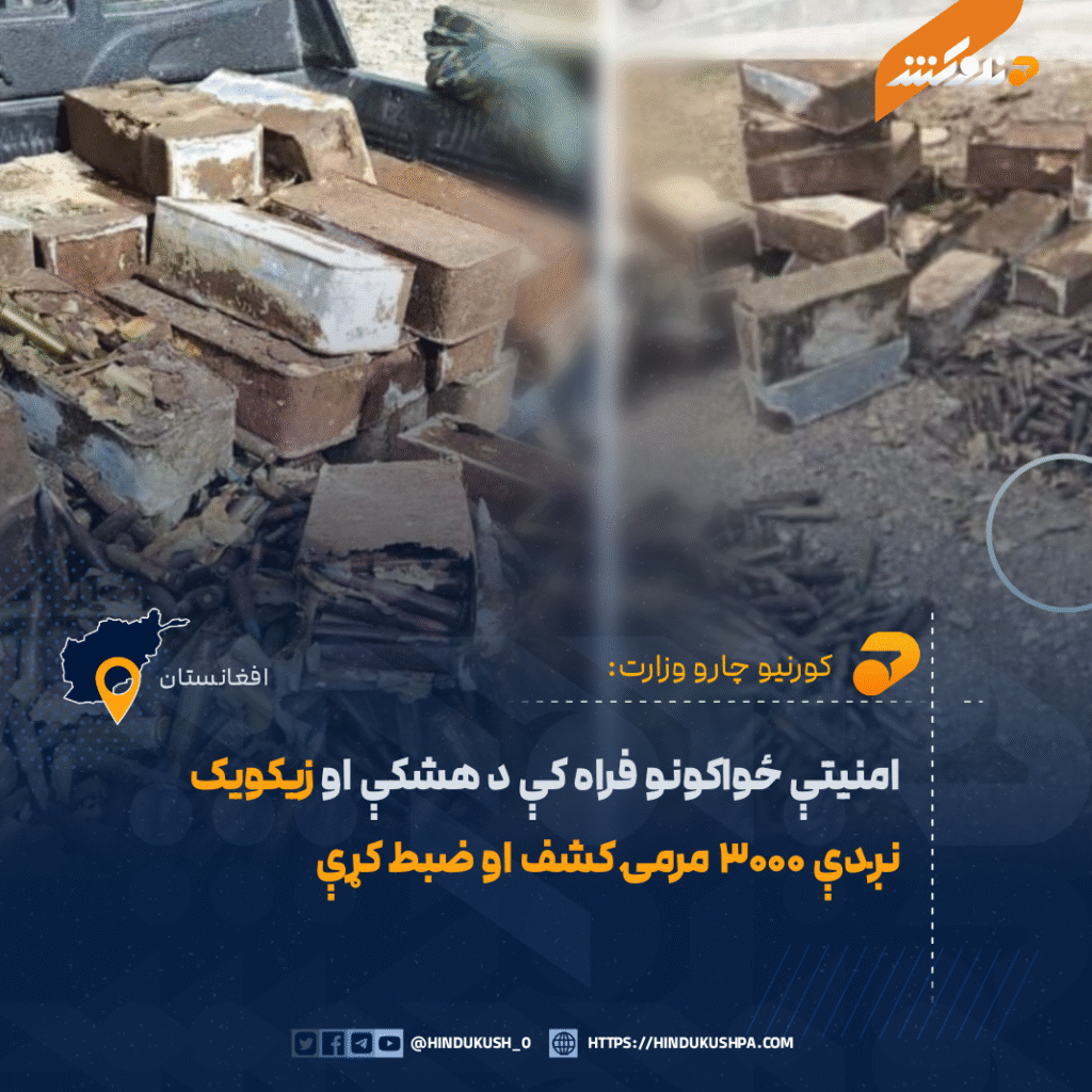 د کورنیو چارو وزارت وایي، د فراه ولایت د شیبکوه ولسوالۍ امنیتي او کشفي ځواکونو د ګډو عملیاتو په ترڅ کې، ۱۶۲۴ دانې د دهشکې او ۱۰۳۰ دانې د زیکویک مرمۍ کشف او ضبط کړې دي.