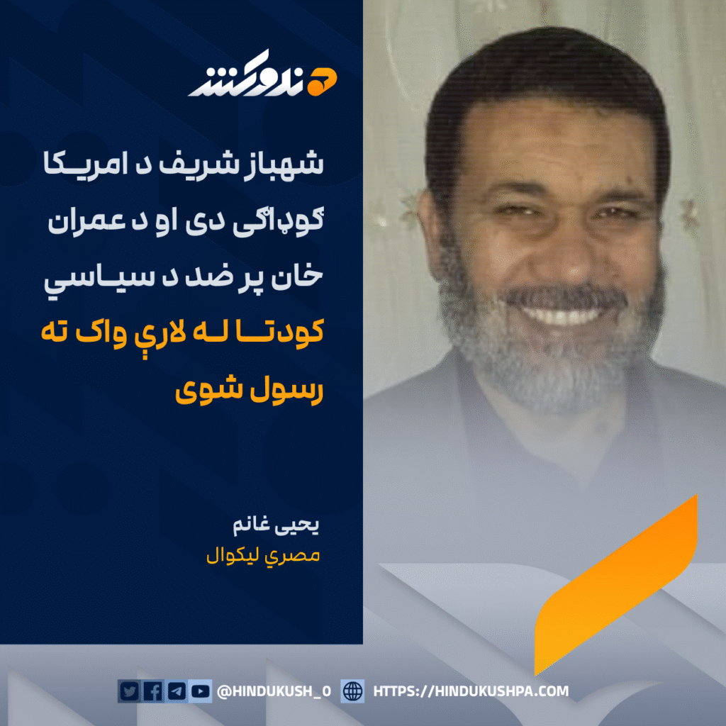 مشهور مصري لیکوال، یحیی غانم پر افغان خاوره د پاکستان برید ته په غبرګون د دغه هېواد د حاکم ګوند پر مشر شهباز شریف توندې نیوکې کړي او هغه یې د امریکا ګوډاګی بللی دی.