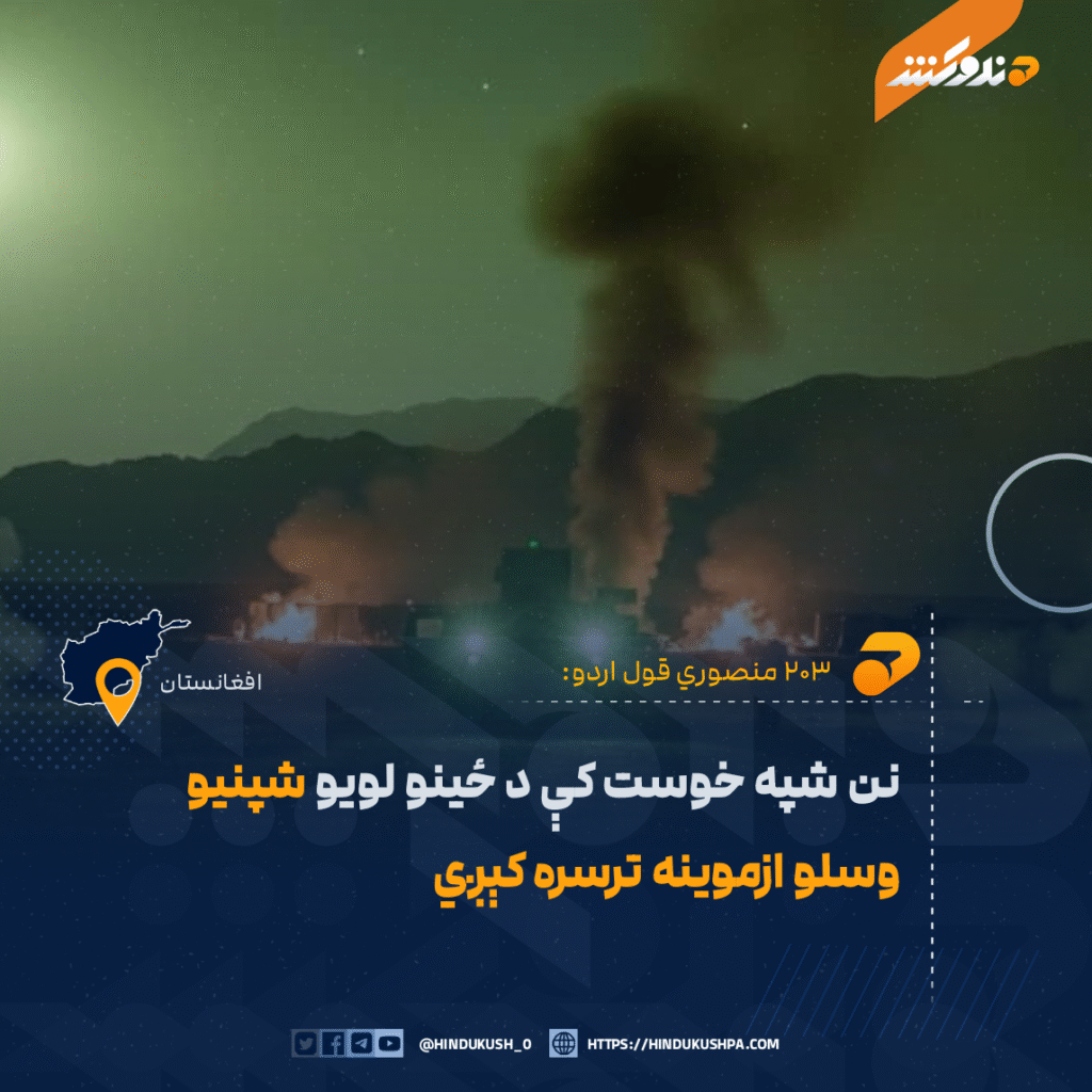 شېر کړئ Facebook Twitter بریښنالیک Telegram WhatsApp د ۲۰۳ منصوري قول اردو رسنیز دفتر وایي، چې د دغې قول اردو اړوند خوست ۳۰۱ پلې لواء کې نن یکشنبه ماسختن ۱۱ بجې د ځینو لویو او وړو شپنیو وسلو ازموینه ترسره کېږي.یادې قول اردو له خوست مېشتو ولسونو غوښتي، چې په دې اړه دې اندېښنه نهکوي.